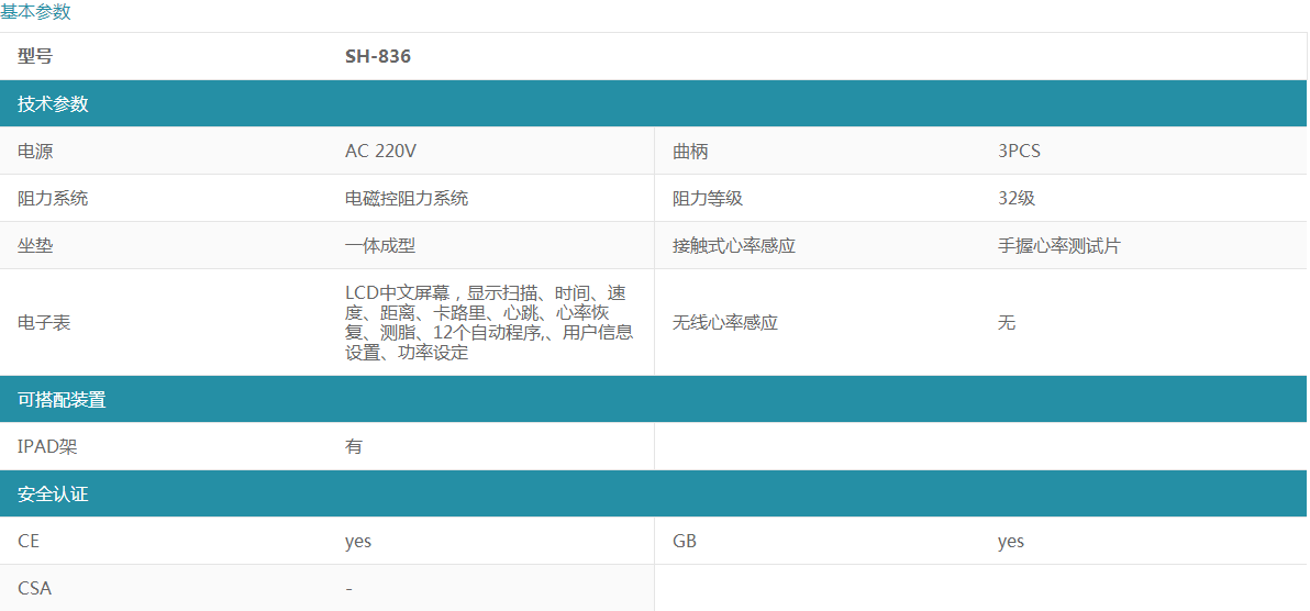 SH-836 高端家用電磁控臥式健身車